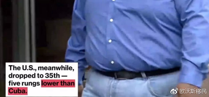 美国作为世界上最发达的国家,它的健康排名却不怎么乐观了,排在了35名,跟去年相比也是下降的。和英国一样,困扰美国健康问题的一大因素就是肥胖。